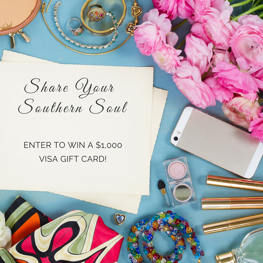 So I definitely couldn’t say no to the opportunity to team up with Ginger me Glam from Austin, Haute in Texas from San Antonio and Fleurdille from Dallas to bring you a contest in which sharing your Southern Soul could win you a $1,000 Visa Gift Card to spend on anything you want! Sweet!