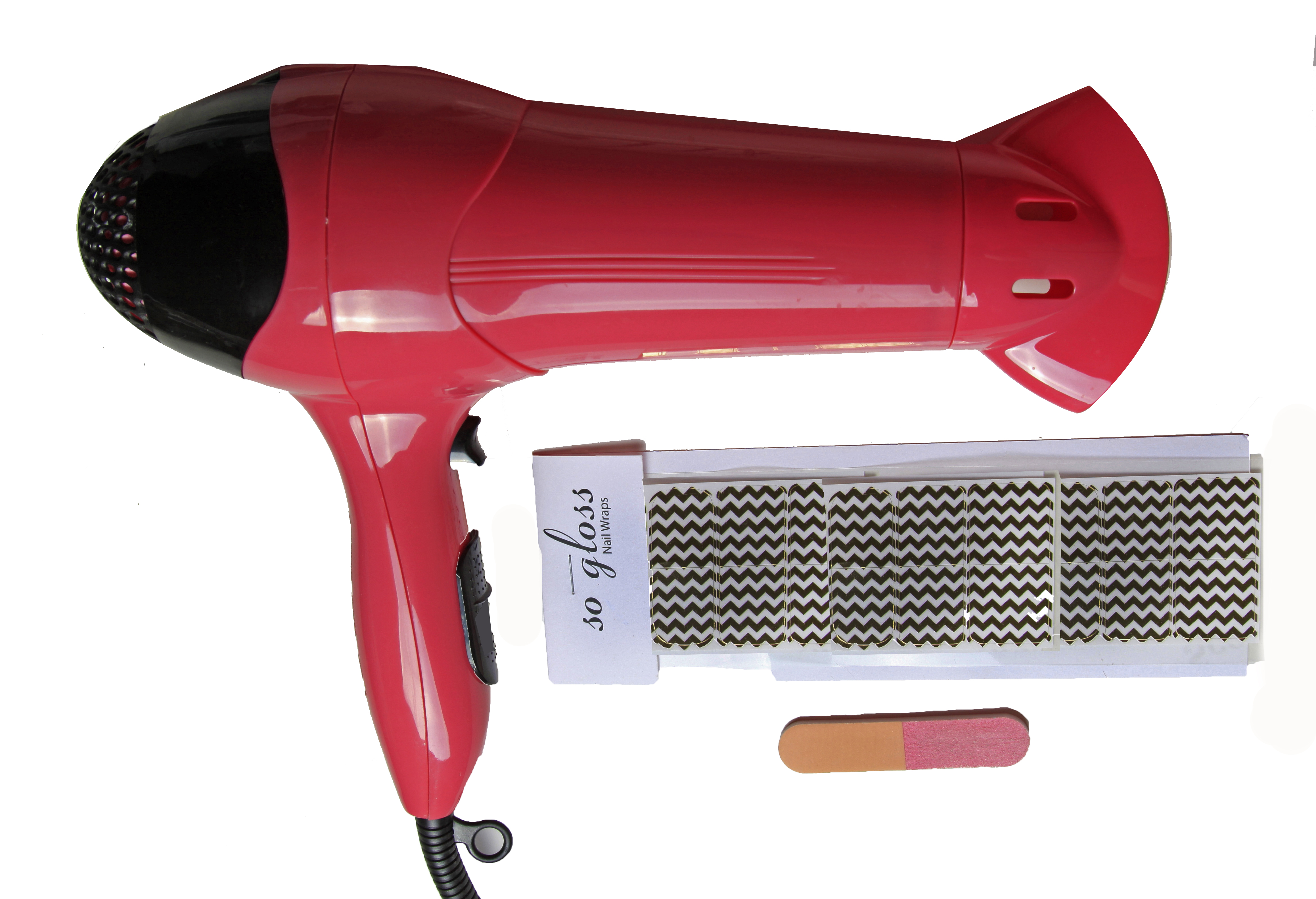 1) You’ll need a nail file, buffer,nail polish remover (not pictured) and a hair dryer.