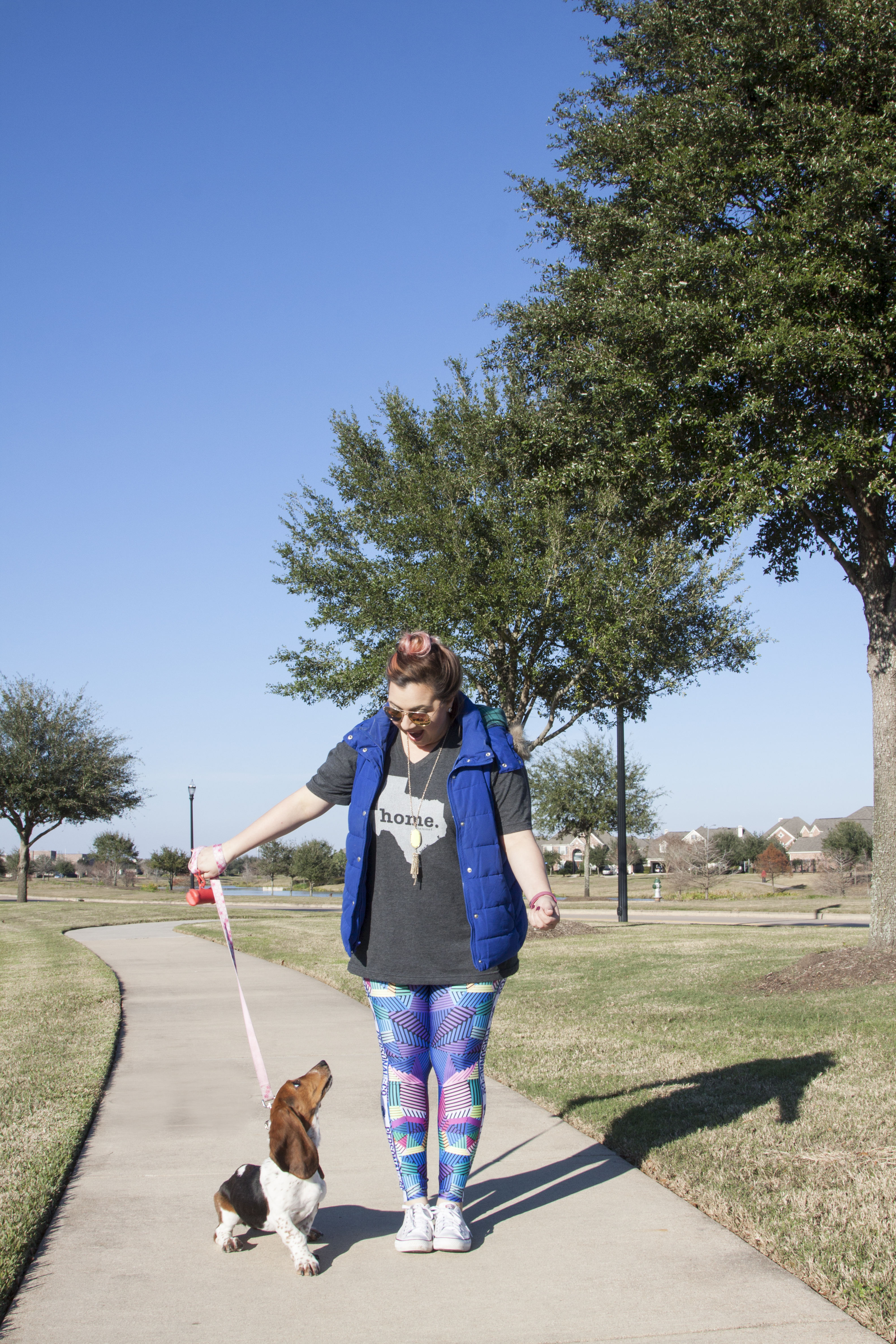 I love the sunny-chilly Houston weather right now! Can it pretty please stay like this longer? This is the perfect chance to head outside in my uber-colorful & comfy leggings courtesy of Personal and Co. Activewear with my puppy Gala and have a walk with her so our leash-walk training game gets stronger. I’ve also been loving this extra dose of activity after the holidays and I plan to keep this up with the company of my sweet puppy. I think that adding this simple routine to my everyday life will turn into a habit I’ll want to continue doing. These walks make me feel so great before starting a day in front of my computer.
