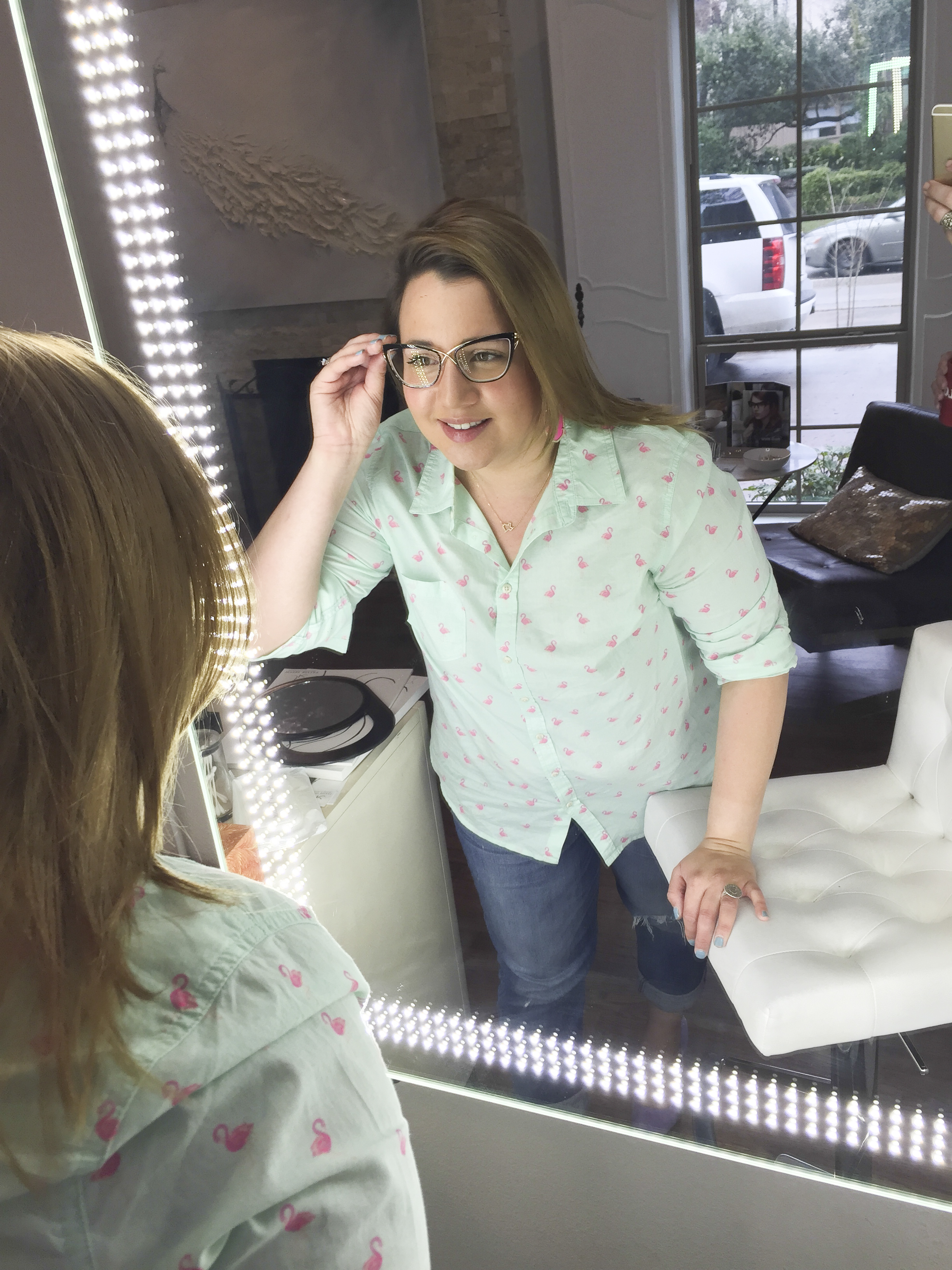I chose these Tom Ford frames because I feel you can still see my eyes (and hence, my eye-makeup) and the subtle cat eye adds that touch of trendy (but not over the top). I originally tried them in white but ordered them in black and rose-gold. I’m in love!