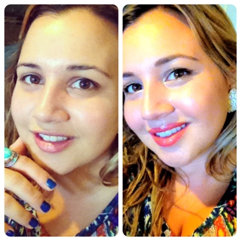 For this beautiful coral glow I followed a few easy steps: 1) I used a highlight stick on all my face before putting on my foundation.