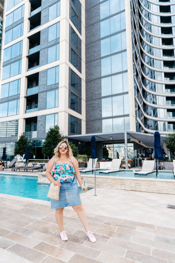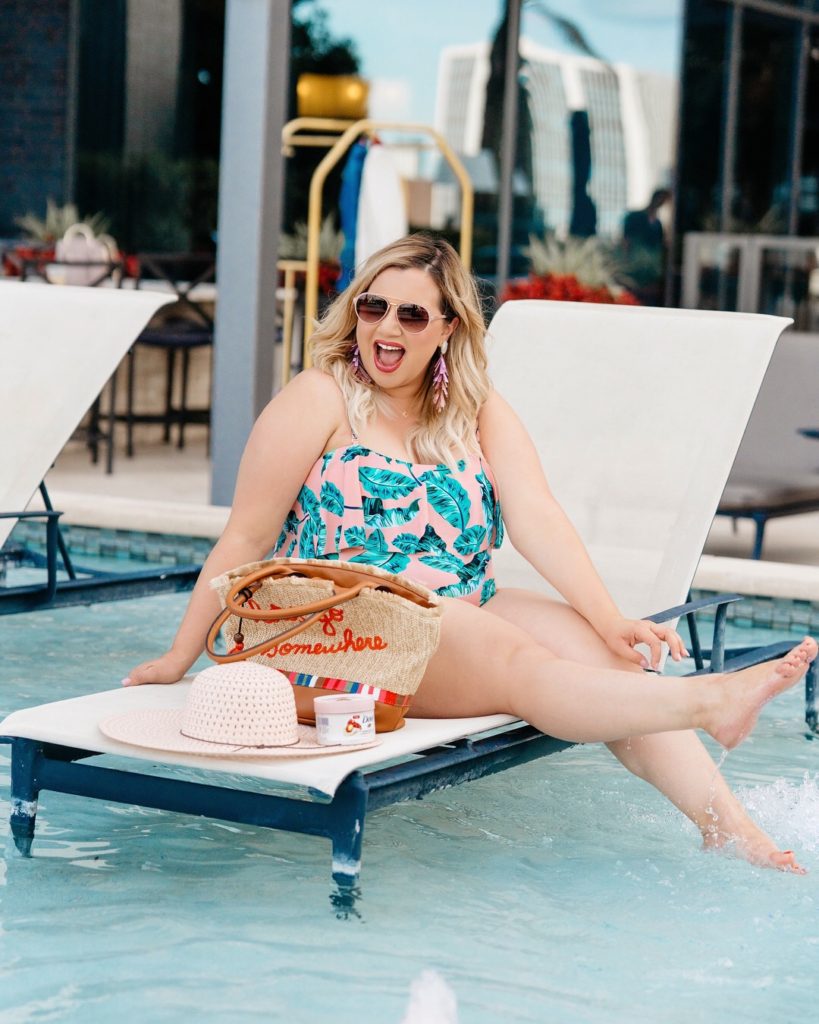 I love the quality and bright print of the bathing suit! It’s what drew me in! I’ve also been wearing my bathing suits as tops because they are way too cute to just use at the pool. Actually, if you take a look at my Instagram, I’ve been doing this a lot shamelessly. Why I love using them as tops too? The swimsuit fabric is great at smoothing out my mom pooch and love handles. Pair it with a jean skirt like I did!