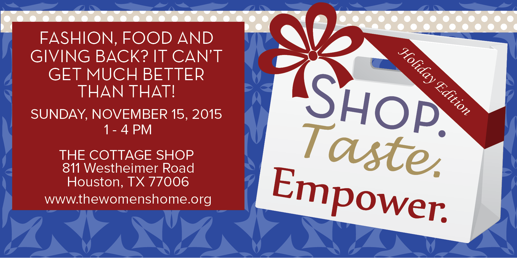 The Cottage Shop’s Holiday Edition: Shop. Taste. Empower. party features the best of beauty, fashion and food, Sunday, November 15, 2015 from 1 to 4 p.m. The free event gives shoppers an opportunity to find incredible gifts, receive styling advice from Houston’s fashion experts, nosh on sweet treats and most importantly, donate women’s winter clothing to those in need.